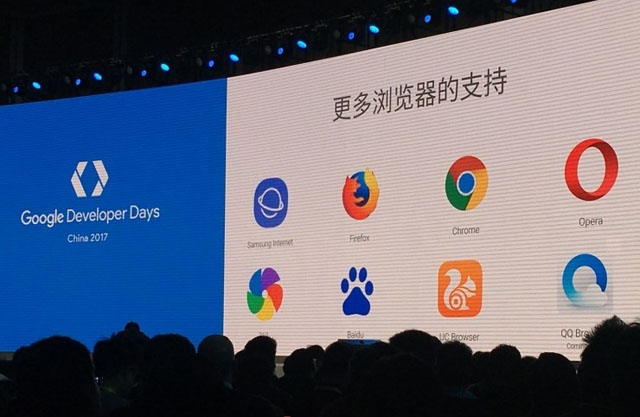 Google 開發技術推廣工程師 Michael Yeung 在大會上表示,支持 PWA 的核心技術已經在全球許多個主要瀏覽器中得到了支持,同時也延伸到了中國的主要瀏覽器,比如說 360 瀏覽器、手機百度、UC 瀏覽器等都已經支持 Service Worker 規范以及 PWA 所依賴的 Cache API,而 QQ 瀏覽器也宣布在未來支持上述規范。