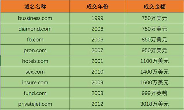 到這里還想不明白為什么要做域名搶注嗎?相信你看到以下幾個(gè)例子,一定會(huì)讓你后悔為什么沒有早點(diǎn)兒發(fā)現(xiàn)這個(gè)金礦。放心,我比你還懊悔,錯(cuò)過的豈止是一個(gè)億的小目標(biāo)?