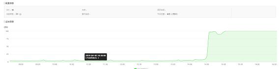 問題二:打開阿里云主機控制管理臺,查看主機信息,發(fā)現(xiàn)當(dāng)天下午2點開始CPU占有率達到100%,之前正常的時候只有3%。
