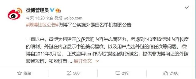 新浪微博實施白名單外鏈限制:不再支持外部鏈接跳轉(zhuǎn)