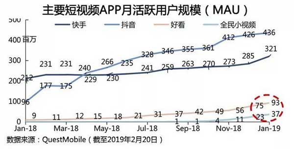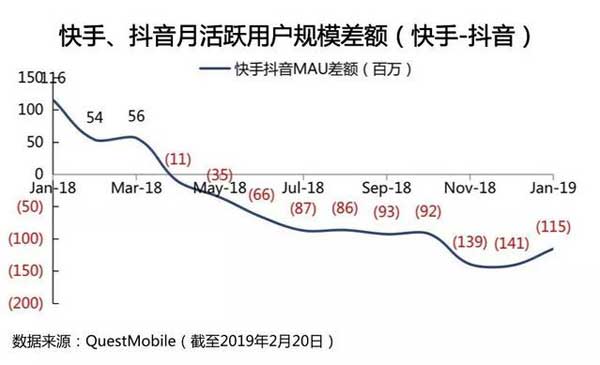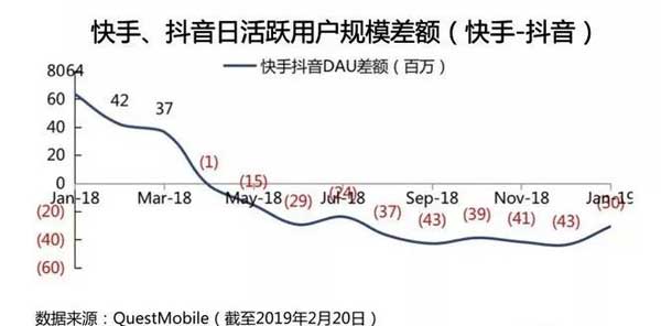 截止2019年1月19日,二者的日活差距縮小為3000萬(wàn)。
