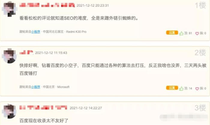 這個誤解來自我公眾號發了這篇文章后,一個關注近兩年的粉絲留言。說真的,確實這樣。經常有人在群里或者私下問我說,為什么我百度網站SEO排名上去了,搜狗、360、神馬搜索排名沒上去,也有人問我谷歌都上去了,百度沒上去。
