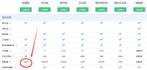 于是趕緊登錄上去看下怎么回事。認真查看后發現網站也沒有被人攻擊,日流量才5個多G,不應該被回源才對啊。本想問下百度客服,奈何人家那會兒是下班時間,沒辦法,只能在他們官網上找下看看有沒有發什么公告了。結果找了半天也沒看到有什么公告發布,倒是在產品價格那里找到了原因: