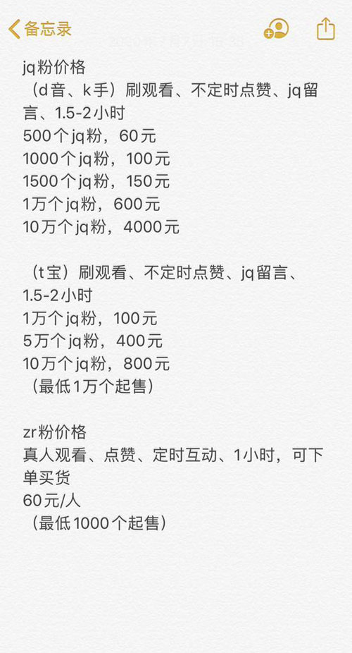 記者從韓雷發(fā)來的一份價(jià)格表上看到,抖音、快手等等直播平臺(tái),500個(gè)“機(jī)器粉”的價(jià)格為60元,而淘寶直播中10000個(gè)機(jī)器粉的價(jià)格僅為100元。
