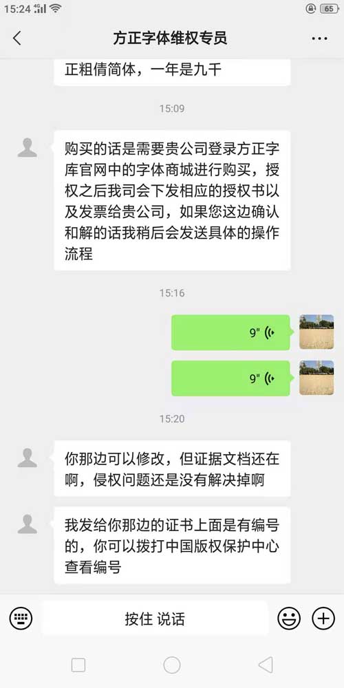 一說到方正字體,老白腦子里就浮現(xiàn)出一幫外包在方正網(wǎng)站‘奮筆疾書’,很多方正的投訴,都是根據(jù)一些消費者或者商家的舉報,來進行的專項投訴處理:例如有一個買家在某個天貓店消費,發(fā)現(xiàn)這個天貓店用的一個圖片上的字體剛好是方正的微軟雅黑,正巧她閑來無事,直接舉報到了方正的官網(wǎng),那么就在方正的后臺就有這個舉報的記錄,對應(yīng)的外包客服就會根據(jù)這些記錄來進行侵權(quán)的警告以及后續(xù)升級的訴訟。