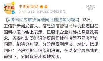 日前,工信部召開屏蔽網址鏈接問題行政指導會,要求9月17日各平臺要按標準解除屏蔽網址鏈接,否則將依法采取處置措施。