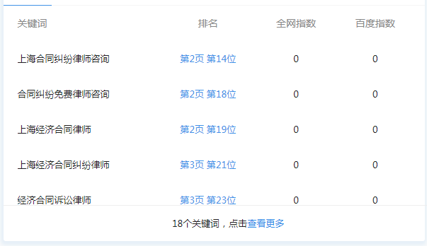 網(wǎng)站上線2個(gè)月,網(wǎng)站關(guān)鍵詞:上海經(jīng)濟(jì)律師,上海合同糾紛律師,上海借款糾紛律師,上海經(jīng)濟(jì)合同律師,上海合同訴訟律師,上海經(jīng)濟(jì)訴訟律師......排名百度前三首頁。新站上線三個(gè)月的考察期馬上就要走完了,非常期待后期的排名!