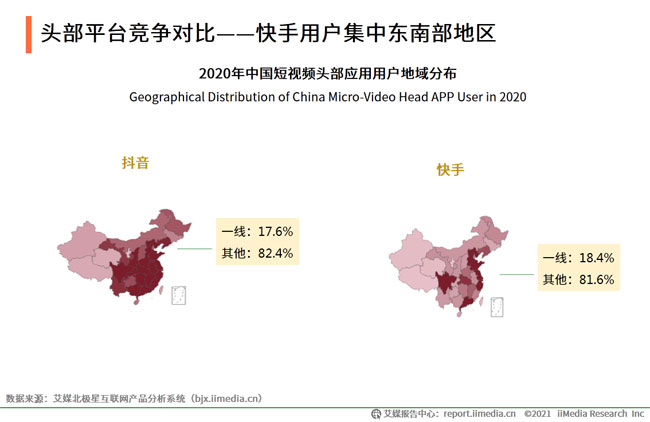 頭部平臺競爭對比——快手用戶集中東南部地區