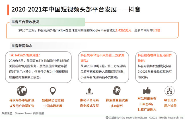 2020-2021年中國短視頻頭部平臺發展——抖音
