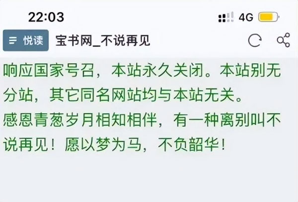 寶書網(wǎng)發(fā)布公告稱,為響應(yīng)國家號召,本站將永久關(guān)閉