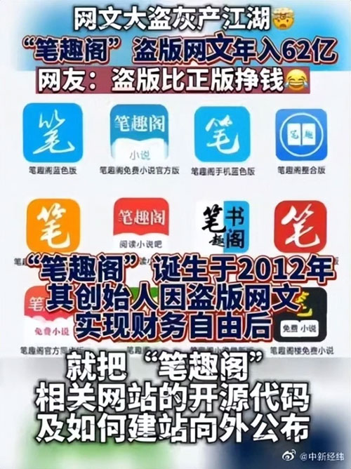 而且恐怖的是,筆趣閣一年盈利 62 萬,而且在盈利之后就把相關(guān)網(wǎng)站的開源代碼及如何建站向外公布。