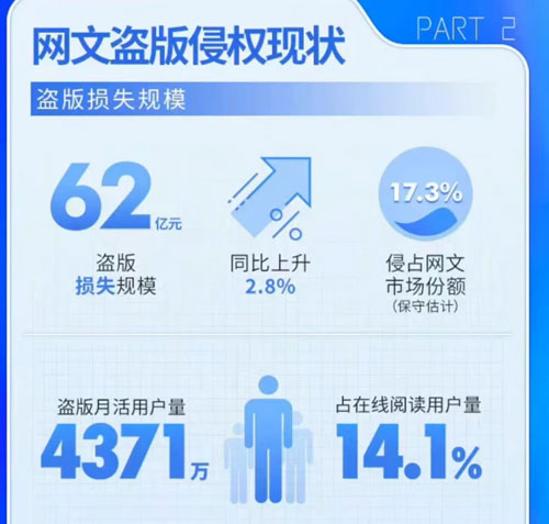 但盜版侵權(quán)狀況卻非常嚴(yán)重,盜版損失規(guī)模有 62 億,盜版月活用戶量為 4371 萬。