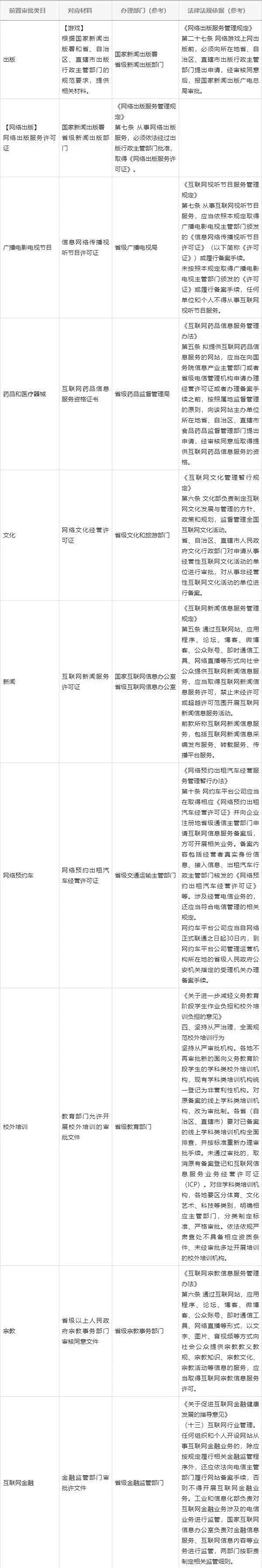 如你的小程序從事新聞、出版、藥品和醫療器械、網約車等需須經有關主管部門審核同意的互聯網信息服務,在履行備案手續時,應提供業務對應前置審批文件。相關類目參考如下: