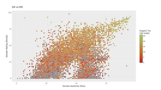 然而,數(shù)據(jù)還顯示,有時同一領(lǐng)域的 DA 和 DR 分?jǐn)?shù)可能會有很大差異。DA 分?jǐn)?shù)明顯低于 DR 分?jǐn)?shù)的域組可能是因?yàn)?Ahrefs在其DR 計(jì)算中同時考慮了鏈接的質(zhì)量和引用域的權(quán)威性。