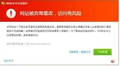 危害說(shuō)明:網(wǎng)站信息被篡改,本站訪(fǎng)客不信任,搜索引擎(百度為例)和安全平臺(tái)(安全聯(lián)盟為例)檢測(cè)到你的網(wǎng)站被掛馬,會(huì)在搜索結(jié)果提示安全風(fēng)險(xiǎn),搜索引擎和瀏覽器都會(huì)攔截訪(fǎng)問(wèn)。